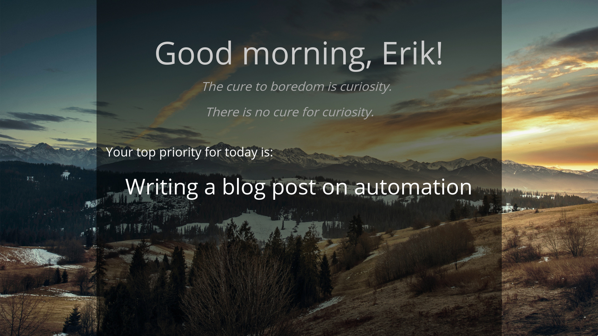 When I start my computer in the morning, I’m greeted by a fullscreen wallpaper,